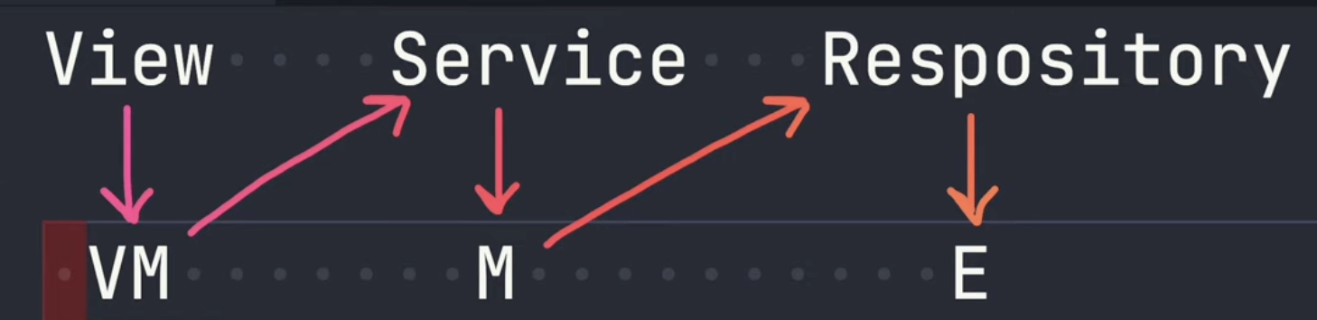 그 로직은 뷰모델에서 하는 것이 아니라 Service에서 일어남..