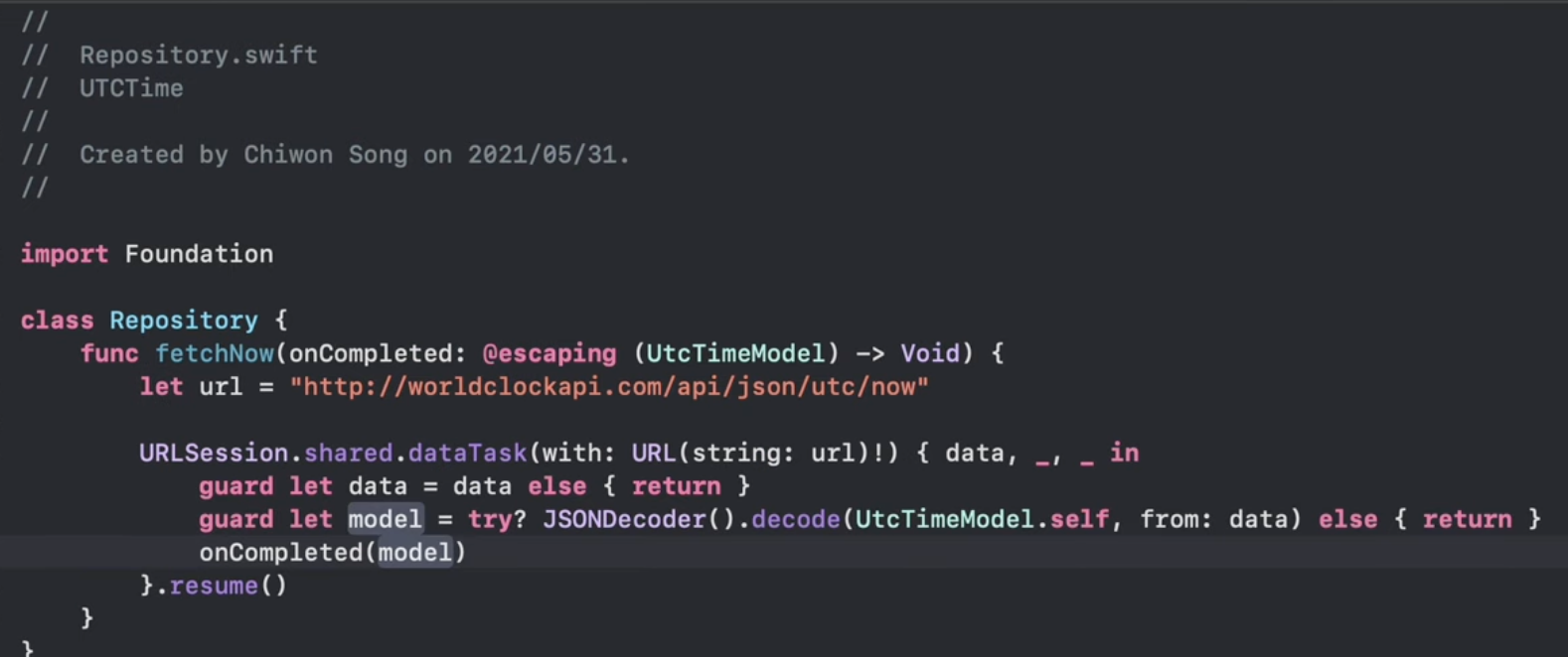 서버로 부터 온 데이터(Entity)인 UtcTimModel을 전달