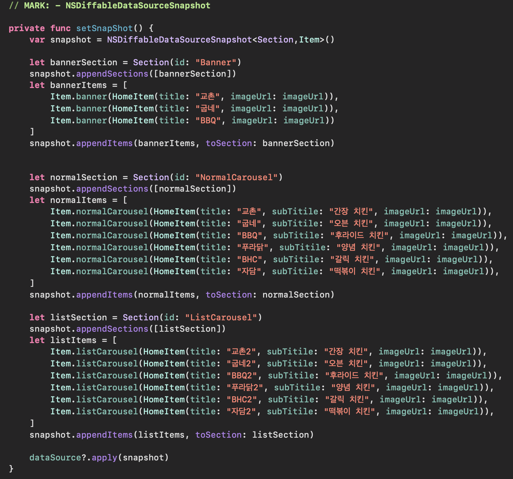 - NSDiffableDataSourceSnapshot: