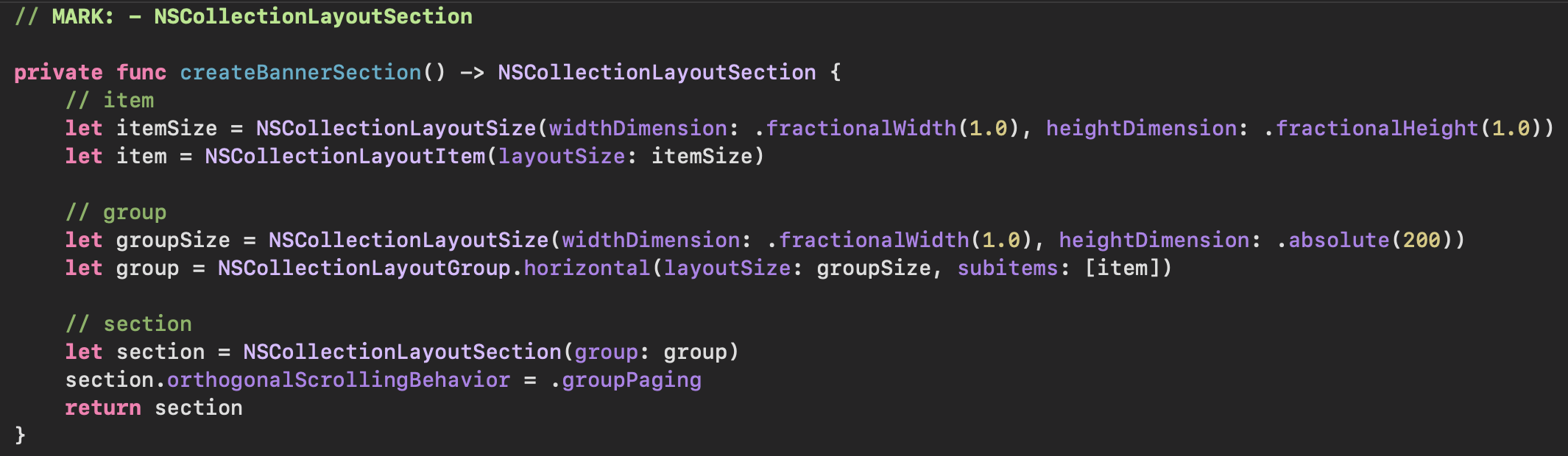 - NSCollectionLayoutSection: