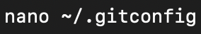 위 명령어로 .gitconfig 파일을 nano 텍스트 편집기로 열어주고
